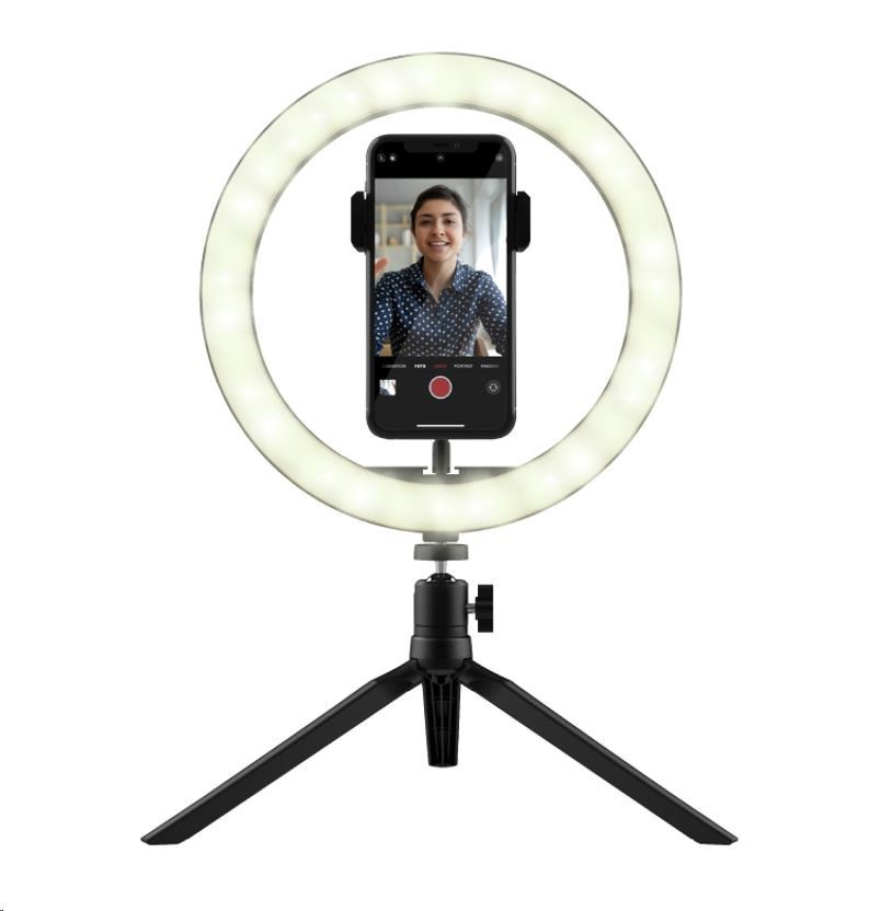 Akční nabídky na váš e-mailImprove your vlogs with this 10 inch ring light, including remote controls, tripod and phone clamp
