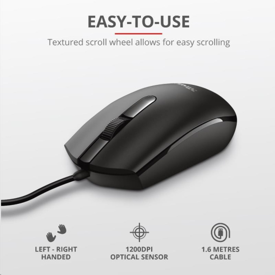 Optická myš s 3 tlačítky; Lze ovládat pravou i levou rukou Specifikace: - Optická myš s 3 tlačítky - Moderní optický senzor poskytuje precizní kontrolu pohybu, 1200DPI - Lze ovládat pravou i levou rukou - Stačí zapojit a začít používat, není potřeba instalovat ovladače Systémové požadavky: - Windows XP až Windows 10 - USB port - 160cm dlouhý kabel USB Obsah balení: - Optická myš - Uživatelská příručka.
