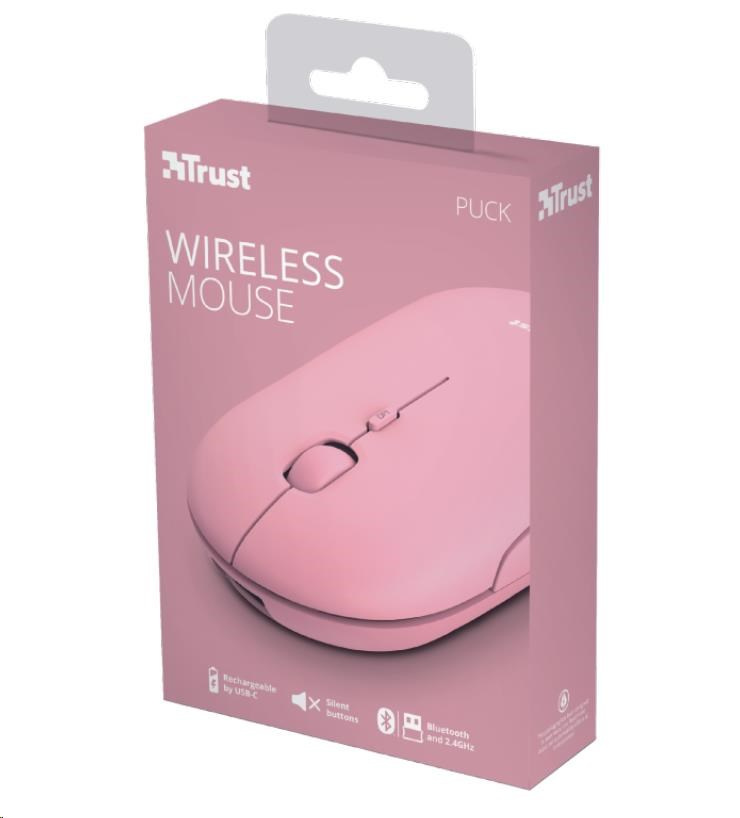 Popis TRUST myš PUCK, bezdrátová, USB, růžová