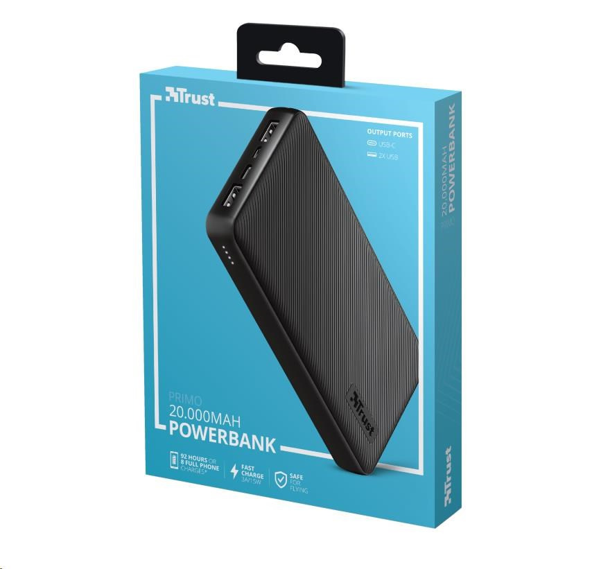 Fast and high-capacity powerbank for up to 92 extra device hours (20.000 mAh)