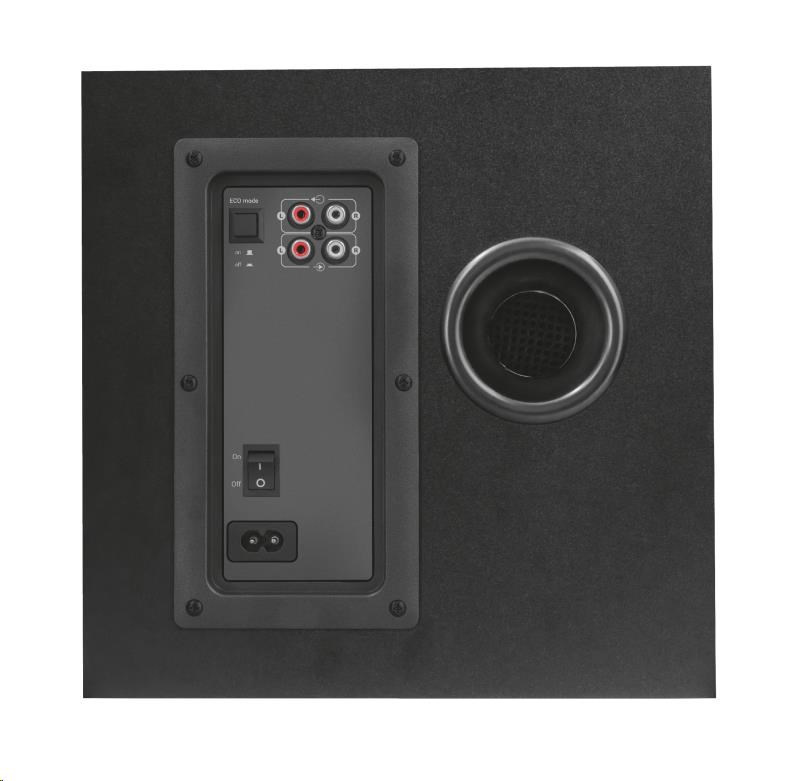 | Controls | ECO button, sound mute, volume control, LED, bass |