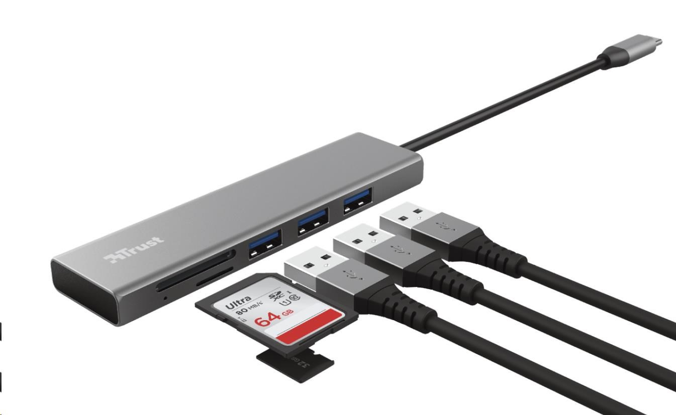 Akční nabídky na váš e-mailCompact, aluminium 3-port USB hub with (micro) SD card reader and USB-C connection