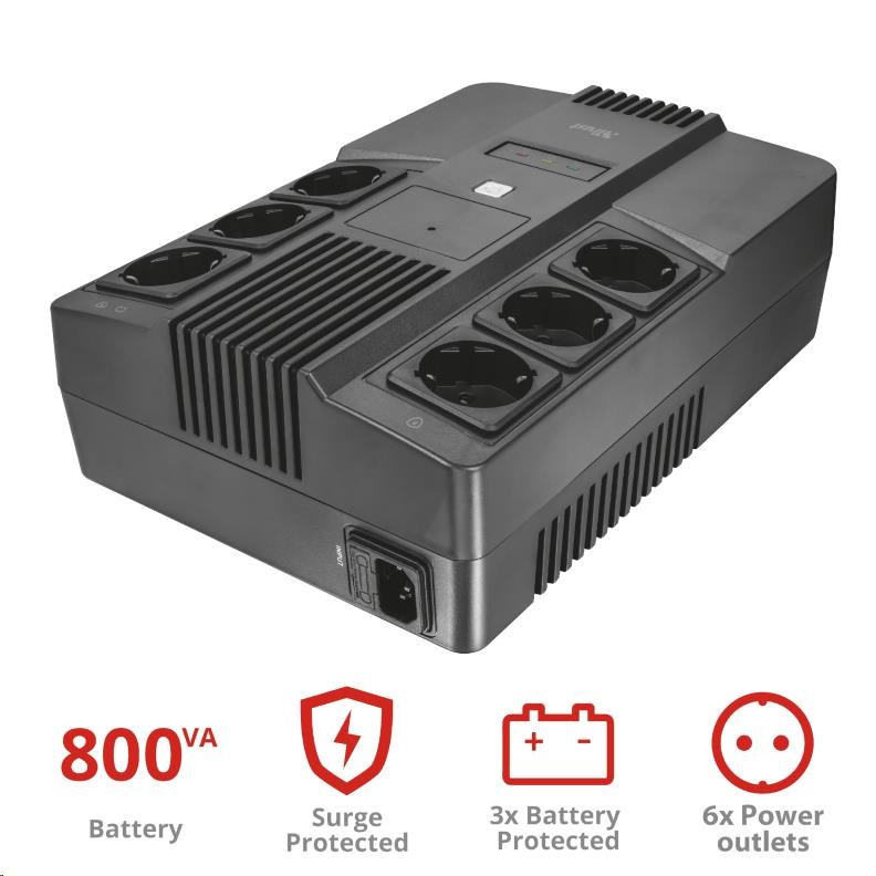 Reliable 800VA battery back-up UPS with 6 wall power outlets, suitable to power and protect your electronic devices