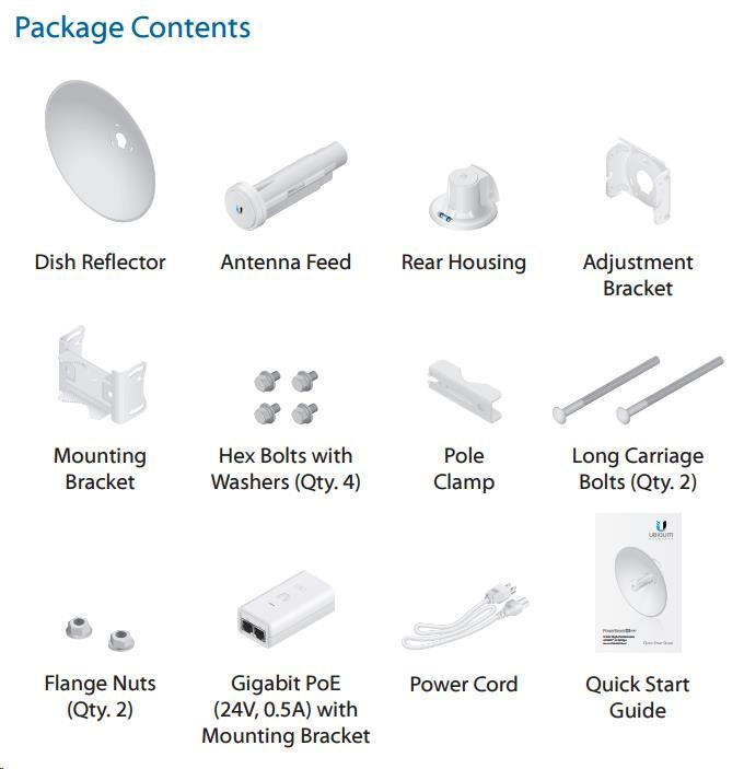 Díky technologii AirMAX ac má PowerBeam vysokou odolnost vůči okolnímu šumu. Výkonný procesor MIPS 74Kc, který je doplněný 64MB pamětí, zaručuje vysokou propustnost sahající až ke 450Mbps+ v závislosti na zvolené šířce kanálu a lokálních podmínkách. V módu P2P je možné volit šířku kanálu 10/20/30/40/50/60/80MHz, v módu P2MP pak 10/20/30/40MHz. Zařízení je vybaveno jedním 10/100/1000Mbps ethernevoým portem, skrze který se napájí přiloženým Gbit POE adaptérem 24V/0,5A.