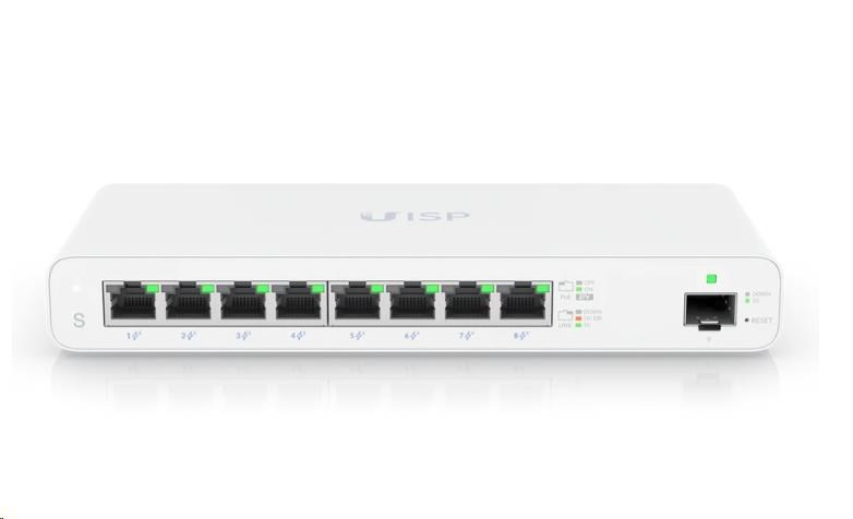 Akční nabídky na váš e-mailIdeální pro nasazení bezdrátového ISP (WISP), UISP Switch je bezventilátorový, Layer 2 PoE switch s (8) GbE RJ45 porty a (1) 1G SFP portem pro další optickou uplinkovou možnost. UISP Switch je cenově výhodné řešení pro WISP, kteří chtějí svým zákazníkům rychle a levně poskytovat gigabitové bezdrátové rychlosti. Se svým mohutným 110W celkovým napájením PoE poskytuje přepínač UISP značný výkon každému rádiu ve vaší servisní síti. Pro větší nasazení jej spárujte s UISP Console a vytvořte soudržný směrovací a přepínací rozbočovač. Přepínač UISP je spravován POUZE pomocí aplikace UISP, centralizovaná platforma, kde můžete monitorovat a spravovat všechna svá UISP zařízení.