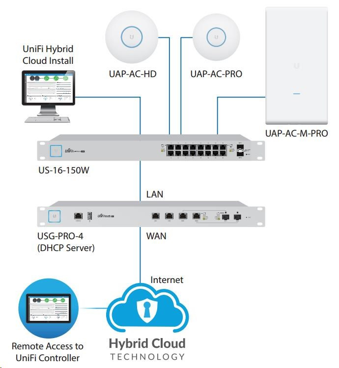 Všechna AP jsou centrálně spravována z jednoho místa pomocí softwarového kontroleru (UniFi Controller software), který je volně stažitelný a podoruje Windows, Linux i MAC. Není tak třeba investovat další prostředky za mnohdy drahé hardwarové kontrolery. Správa probíhá přes standartní webové rozhraní, je tedy přístupná odkudkoliv, např. z mobilu, tabletu atd. Celá síť lze nastavit doslova během několika minut a nepotřebujete k tomu žádná speciální školení, vše je maximálně jednoduché.