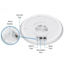 Rozšiřte svoji síť pomocí UAP-AC-SHD accesspointu s dedikovaným bezpečnostním radiem z dílny Ubiquiti. Zařízení je součástí kompletní řady výrobků UniFi, podporuje standardy 802.11a/g/b/n/ac/ac-wave2, kdy používá jak pásmo 2.4 GHz, tak i 5 GHz. K podpoření výkonu bezdrátové části je UAP vybaveno dvěma Gbit ethernetovými porty, které jsou kompatibilní se standardem 802.3at PoE+. Maximální výkon radiové části je 25dBm v obou pásmech, podpořený čtveřicí antén s 6dBi ziskem. Šifrování pomocá WPA2 je dnes již samozřejmostí. UAP je možné instalovat na stejný držák jako UAP-AC-PRO, v případě upgradu sítě tak není potřeba složitě vyměňovat úchyty pro zařízení.