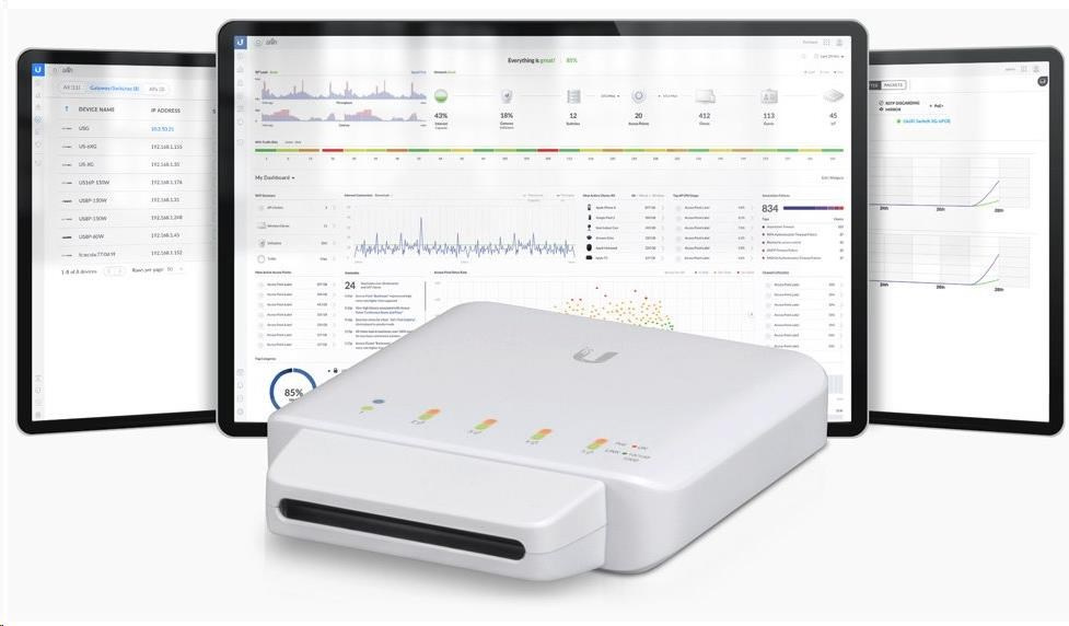 Jediná instance řídicí jednotky UniFi spuštěné v cloudu může spravovat více UniFi sítí v rámci centralizovaného rozhraní. Každá síť je logicky oddělena a má vlastní síťové monitorování, konfiguraci, mapy, statistiky a účty správce.