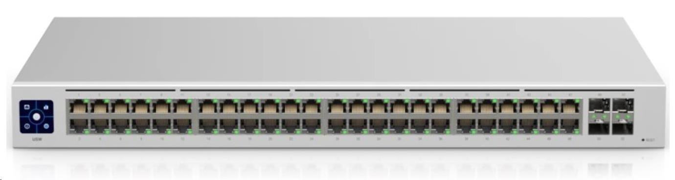 USW-48 je plně managovatelný switch se 48x 1Gbps ethernet porty a 4x 1Gbps SFP porty.