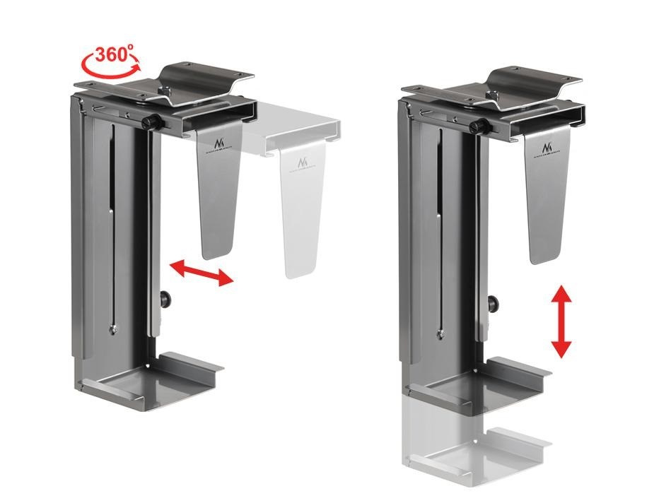Univerzální držák na PC Fiber Mounts M7C13S Profesionální držák na PC, uchycení na stůl nebo stěnu, nastavení na požadované rozměry, nosnost 10kg Držák na PC špičkové kvality a bezpečnosti. Velmi pevné uchycení vašeho PC na stůl nebo stěnu. Nastavení na rozměry vašeho PC. Materiál ocel, barevné provedení stříbrné. Na PC s hmotností až 10kg. Snadná a rychlá instalace. Záruka 5 let. Držák na PC / počítač pro uchycení pod stůl, na bok stolu nebo na stěnu, případně na strop Fiber Mounts M7C13S Technické údaje: nosnost 10kg univerzální, vhodný na většinu dostupných PC šířka PC od 88mm do 203mm výška PC od 359mm do 592mm délka PC není podstatná otáčení do stran zajištění v požadovaných rozměrech profesionální výrobek špičkové kvality bezpečný, pevný, spolehlivý uchycení na svislou nebo vodorovnou plochu pod stolovou desku, na bočnici stolu, na stěnu nebo i na strop materiál ocel barevné provedení stříbrné záruka 5 let Stolní držák na počítač PC Fiber Mounts M7C13S Univerzální držák PC, který uchytíte na jakoukoliv svislou nebo vodorovnou plochu - pod desku stolu, na bočnici stolu, na stěnu nebo třeba na strop. Univerzální, nastavení na potřebné rozměry a zajištění v pozici. Snadná a rychlá montáž..