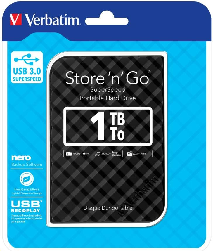 Popis VERBATIM Externí HDD 1TB Store 'n' Go Portable Hard Drive USB 3.0, Black GEN II