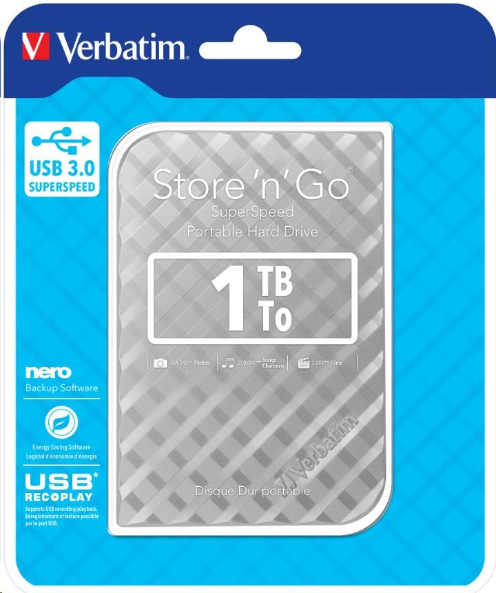 VERBATIM Externí HDD 1TB Store 'n' Go Portable Hard Drive USB 3.0, Silver GEN II