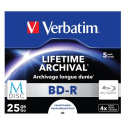 Verbatim M-Disc BD-R Verbatim M-Disc představuje nový standard v oblasti digitálního ukládání, navržený k zachování a ochraně souborů vyrytím informací do patentované vrstvy, která je pevná jako skála a odolná vůči světlu, teplotám i vlhkosti. Testování v souladu s průmyslovým standardem ISO/IEC 10995, které provedla společnost Millenniata, ukazuje, že předpokládaná životnost disků M-Disc DVD je 1 332 roků, přičemž pouhých 5 % disků vykazuje známky ztráty dat po 667 letech. Předpokládaná životnost je tím pádem několik set roků. To znamená, že při ukládání vašich cenných fotografií, hudebních knihoven, lékařských dokumentů nebo jiných údajů máte jistotu, že se vše nachází na disku, který přečká několik generací. Na disk M-Disc BD-R je díky jeho skvělé kompatibilitě možné zapisovat a číst z něj ve všech současných mechanikách Bluray. Parametry: Kapacita: 25 GB Rychlost: 4x Způsob balení: Balení po 5 ks (Jewel Case) Povrch disku: Možnost potisku na inkoustových tiskárnách Oblast tisku: 40 – 118 mm.
