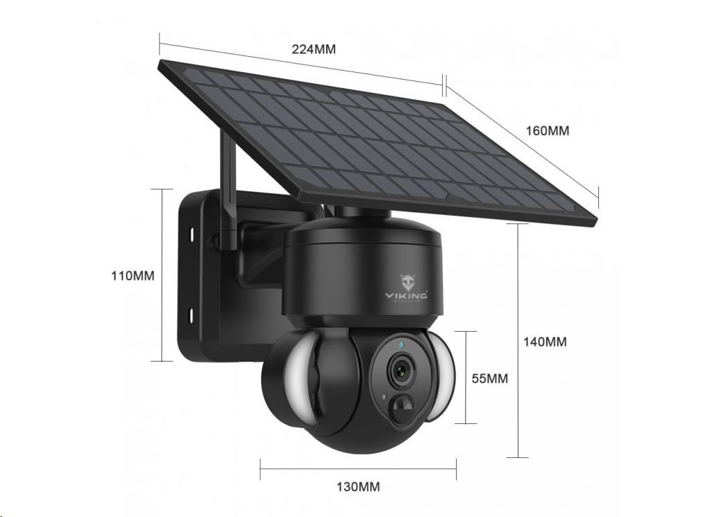 Solární HD kamera VIKING HDs01 4G s otočným motorizovaným objektivem, ochranou IP66 (platí pouze v případě, že jsou všechny vstupní i výstupní konektory zakryté např. silikonovým ochranným krytem) a silným nočním infračerveným viděním až 30m. Vhodná pro zabezpečení prostorů bez možnosti napájení. Díky solárnímu panelu je kamera zcela nezávislá na elektrické síti.