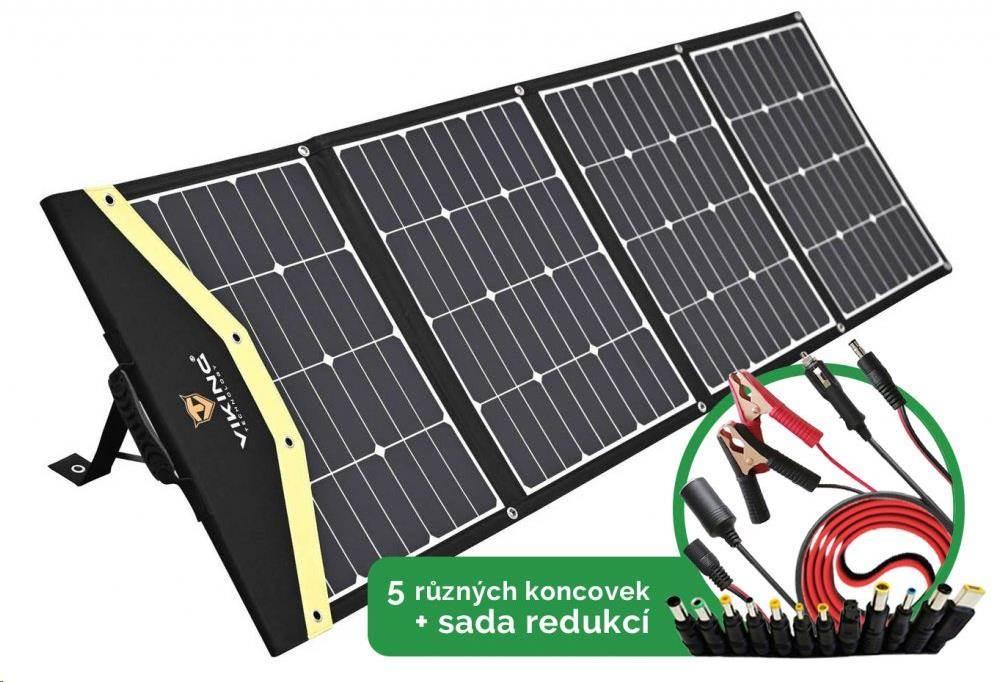 Solární nabíjecí panel pro všechna vaše elektronická zařízení. Se svými 180W/19.8V, je ideální volbou pro nabíjení bateriových generátorů značky VIKING. Díky vysoce kvalitním článkům s efektivitou 22.4%, dokáže přeměnit sluneční svit na solární energii daleko efektivněji, než řada jeho konkurentů.