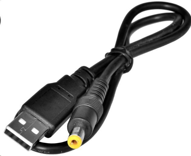 Napájecí redukce z portu USB (A) na konektor jack 5,5/2,1 mm nahrazující externí 5V zdroj. Redukci lze použít pro čtečky Virtuos připojené RS-232 kabelem nebo pro zákaznický displej Virtuos FL-730MB. Délka kabelu: 0,5 m.
