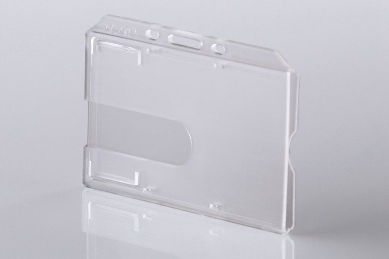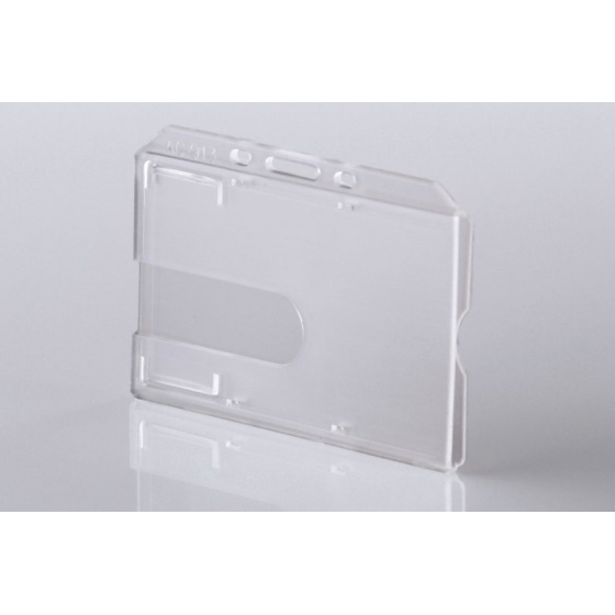 Tuhá plastová visačka pro magnetické karty 54×86 mm – vodorovná, provedení z průhledného polomatného plastu. Možno zavěsit na klip nebo řetízek..