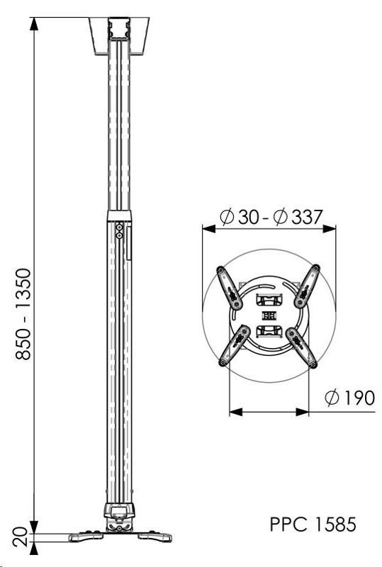 PPC 1585 Professional Teleskopický stropní držák na projektor 85-135 cm Teleskopický stropní držák n