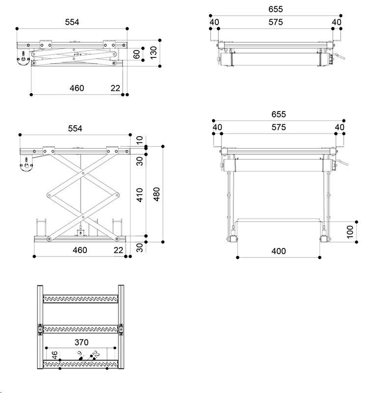 Rozměry uzavřeného výtahu 575 x 130 x 554 mm (š x v x h)