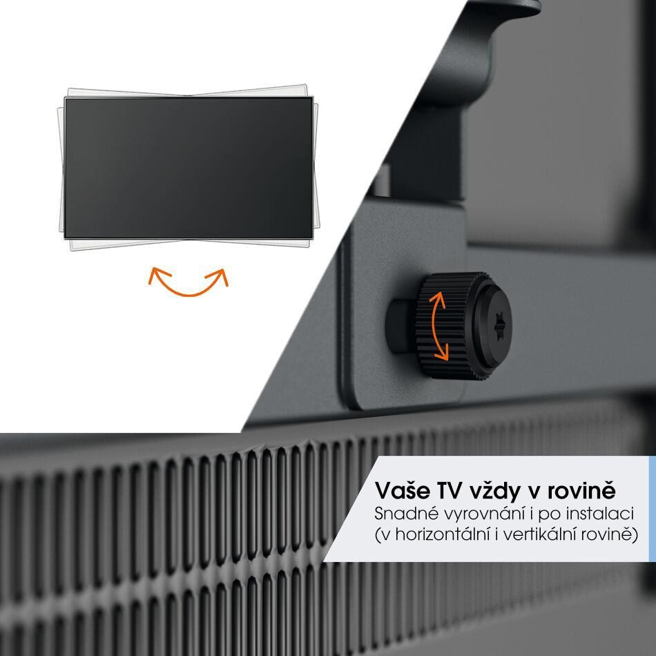Bezpečnost, design a pohodlí při sledování TV jdou ruku v ruce s držákem TVM 3223. Držák je speciálně navržen pro intenzivní používání. Je velmi robustní a zaručuje optimální zážitek ze sledování TV. Můžete jej otáčet až o 120° (záleží na šířce TV) a naklápět o 20° (10° nahoru a dolů). TVM 3223 je vhodný pro televizory s úhlopříčkou od 19 do 43 palců a hmotností do 15 kg.