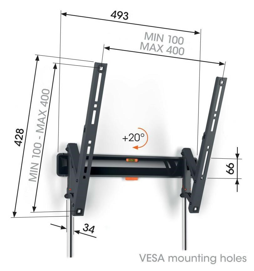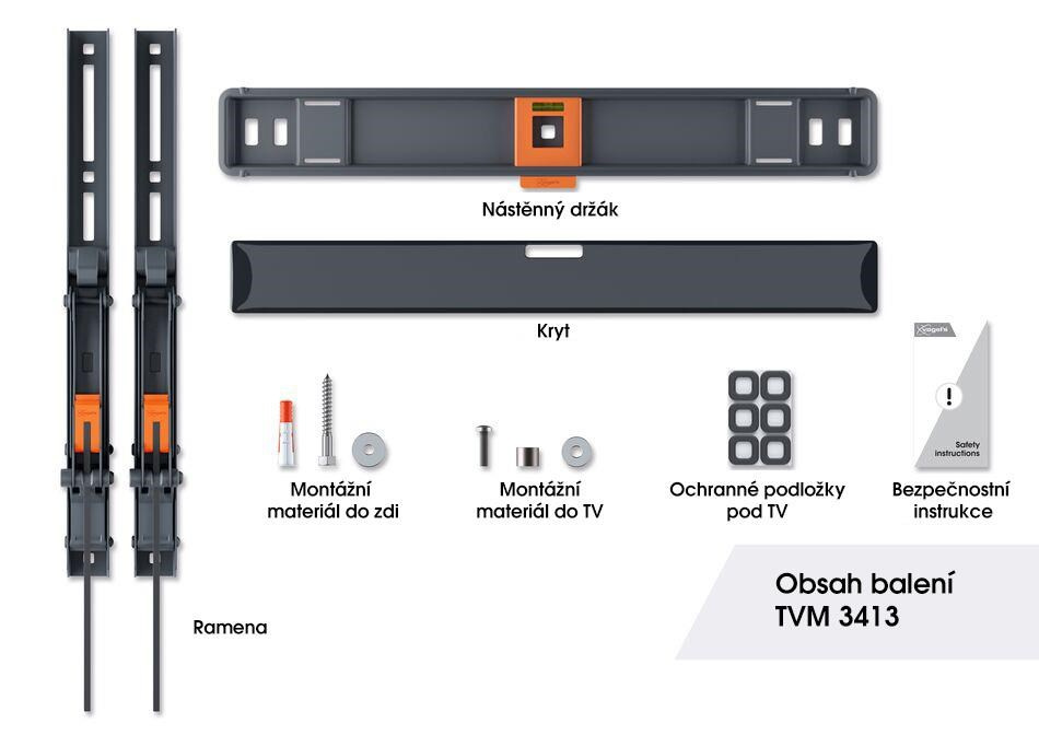 Nástěnný držák TVM3413 je ideální, pokud chcete televizor umístit o něco výše na stěnu, například v ložnici. Váš televizor bude namontován stylově a bezpečně. A obrazovku můžete naklonit až o 20° a vytvořit si tak pohodlný pozorovací úhel. Nástěnný držák je vhodný pro televizory s úhlopříčkou od 32 do 65 palců a hmotností do 25 kg.