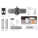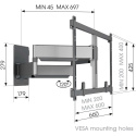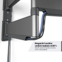Díky 69 cm dlouhým ramenům má držák velký dosah dopředu, takže je ideální pro montáž do skříně nebo niky. Funkce naklápění byla záměrně vynechána kvůli ochraně velkých citlivých obrazovek. Výhodou velkých obrazovek je samozřejmě to, že pro skvělý zážitek ze sledování naklánění není nutné.