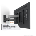 Nástěnný držák ELITE Forward Motion TV je speciální, mimořádně pevný nástěnný držák vhodný pro televizory s úhlopříčkou 55 až 100 palců a hmotností až 75 kg - ideální pro velké televizory OLED nebo QLED. ELITE Forward Motion se otáčí až o 120°, takže můžete televizor sledovat prakticky v jakémkoli úhlu. Držák na stěnu je nejen velmi pevný, ale také velmi tenký, takže mezi televizorem a stěnou zůstává pouze 4,5 cm.