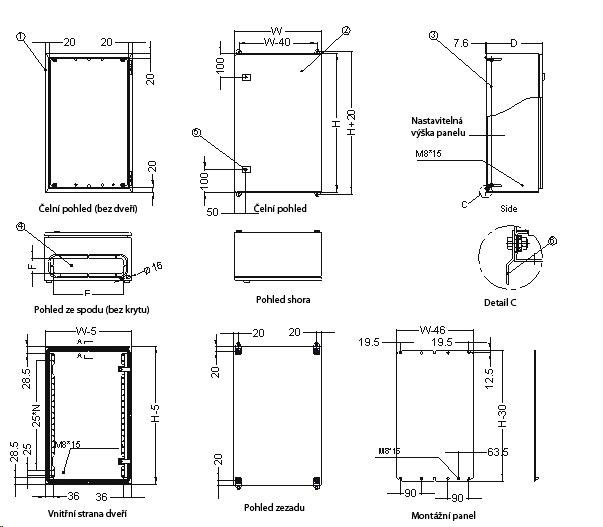Akční nabídky na váš e-mailUniverzální rozvaděč, IP66, ocelový, šedý. Třívrstvá povrchová úprava (fosfátování, máčení v základním laku, práškový lak), zaměnitelné dveře, pevná konstrukce. Odnímatelný kryt kabelového průchodu. Rozvaděč je vyroben z válcované oceli o tloušťce 1,5 mm. Standardy: IEC60529, EN60529/10.91, GB4208-93 Provedení: dveře - plné, otevíratelné o 110 stupňů, montáž pravá nebo levá (uživatelsky zaměnitelné otevírání) zádní kryt - plný boční kryt - plný horní kryt - plný montážní deska: