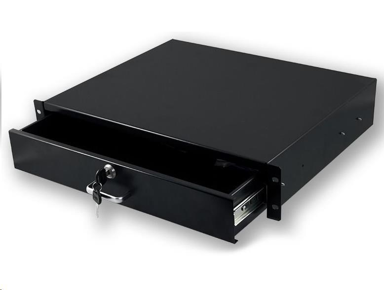 Uzamykatelná zásuvka pro uložení věcí v rackové skříni.