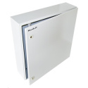 Venkovní nástěnný rozvaděč vyrobený z válcované oceli o tloušťce 1,5 mm.Třívrstvá povrchová úprava. Provedení: dveře - plné, otevíratelné o 110°, zaměnitelný směr otevírání, těsnění z pěnového polyuretanu zádní kryt - plný boční kryt - plný horní kryt - plný