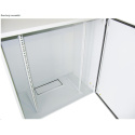 Venkovní nástěnný rozvaděč vyrobený z válcované oceli o tloušťce 1,5 mm.Třívrstvá povrchová úprava. Provedení: dveře - plné, otevíratelné o 110°, zaměnitelný směr otevírání, těsnění z pěnového polyuretanu zádní kryt - plný boční kryt - plný horní kryt - plný