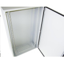 Venkovní nástěnný rozvaděč vyrobený z válcované oceli o tloušťce 1,5 mm.Třívrstvá povrchová úprava. Provedení: dveře - plné, otevíratelné o 110°, zaměnitelný směr otevírání, těsnění z pěnového polyuretanu zádní kryt - plný boční kryt - plný horní kryt - plný