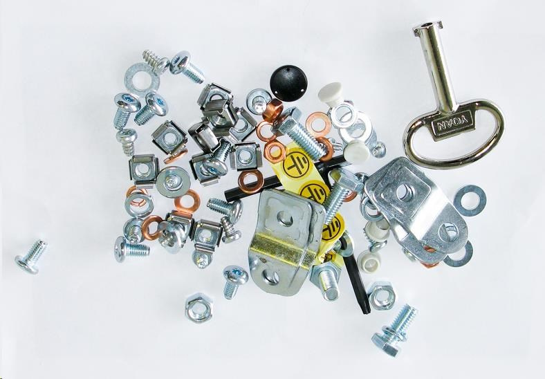 Příslušenství: - uši pro uchycení nad a pod skříní s přesahem 10 mm na každé straně (odsazení od zdi při jejich užití +8 mm)