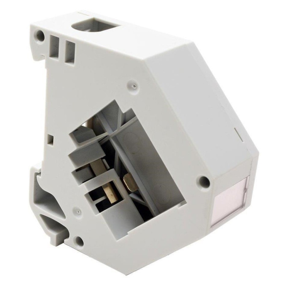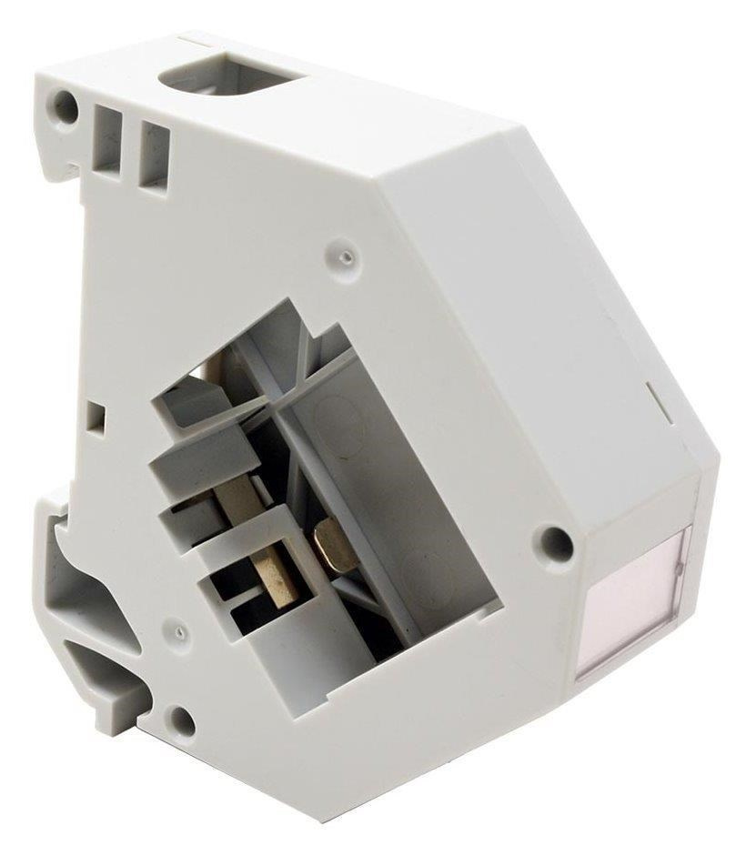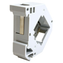 Plastový držák pro 1 keystone na DIN lištu. Integrovaný kovový pásek zajišťuje uzemnění keystone modulu. Štítek pro popis (vyjímá se po sejmutí bočního krytu)..