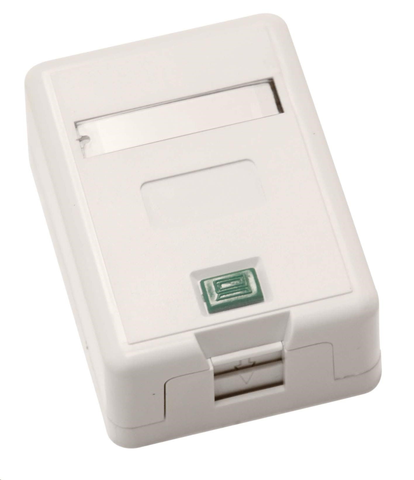 Zásuvka neosazená 1x RJ45 Pružinová dvířka zabrání zaprášení kontaktů keystonu Provedení: na omítku.