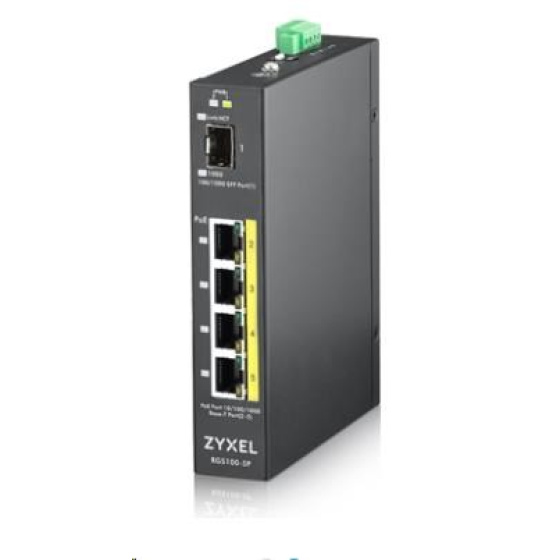 Zyxel RGS100-5P 5-port Gigabit PoE switch, 4x GbE + 1x SFP, PoE budget 120W, DIN rail/Wall mount, IP30